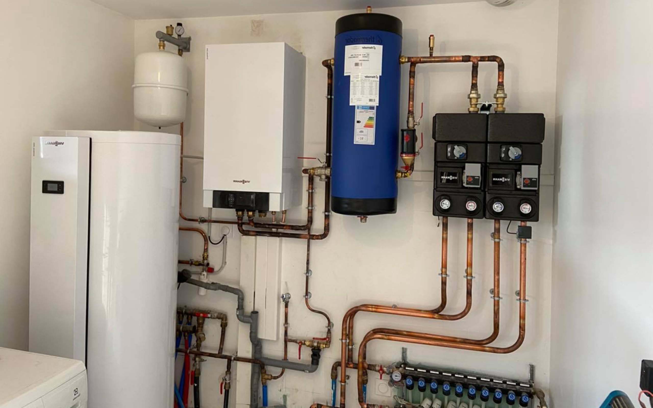 Nos chauffagistes proposent également la pose, la maintenance et la rénovation de pompes à chaleur, de panneaux photovoltaïques et de ballons thermodynamiques, ainsi que la création et rénovation de salles de bain.